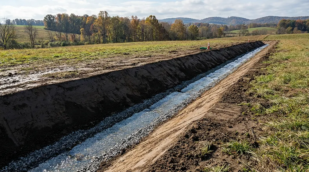 GSW Excavating provides expert trenching, drainage, and ditch construction services throughout North Central West Virginia to keep your property dry, stable, and protected year-round.